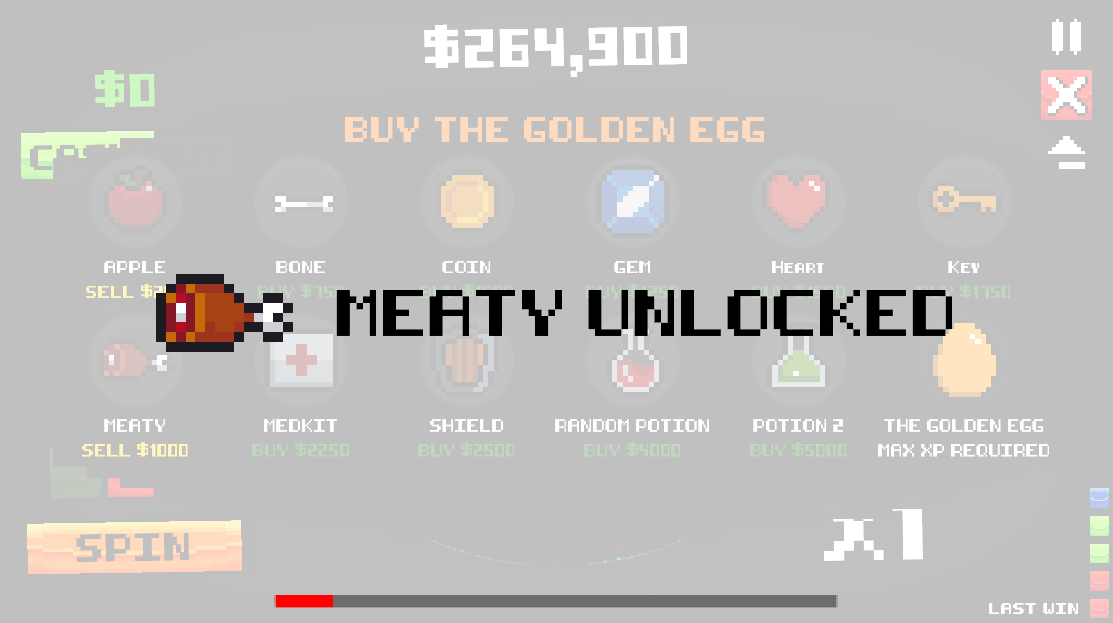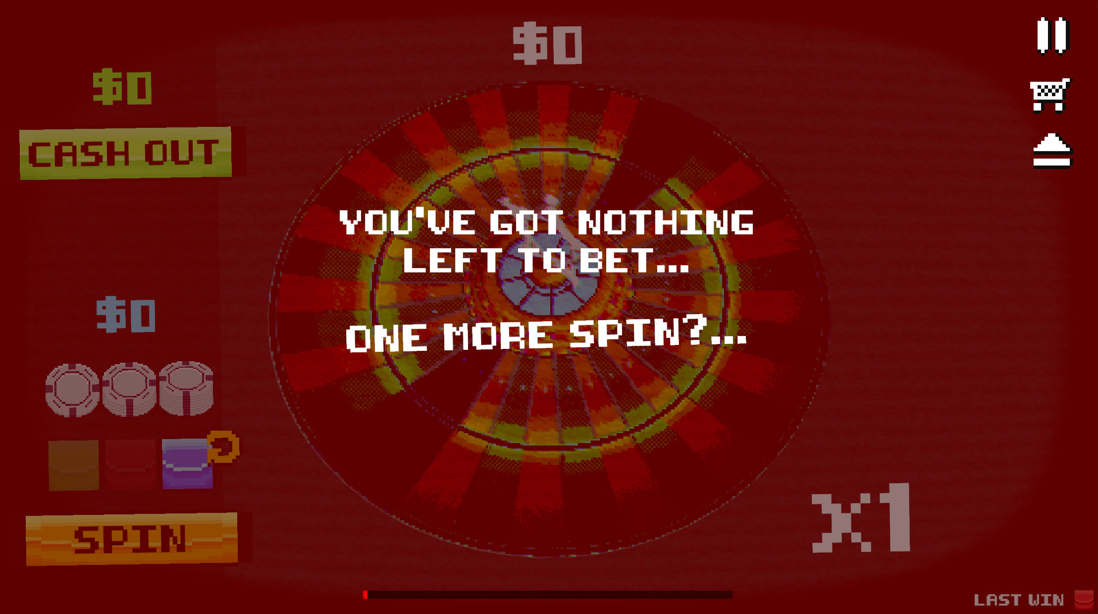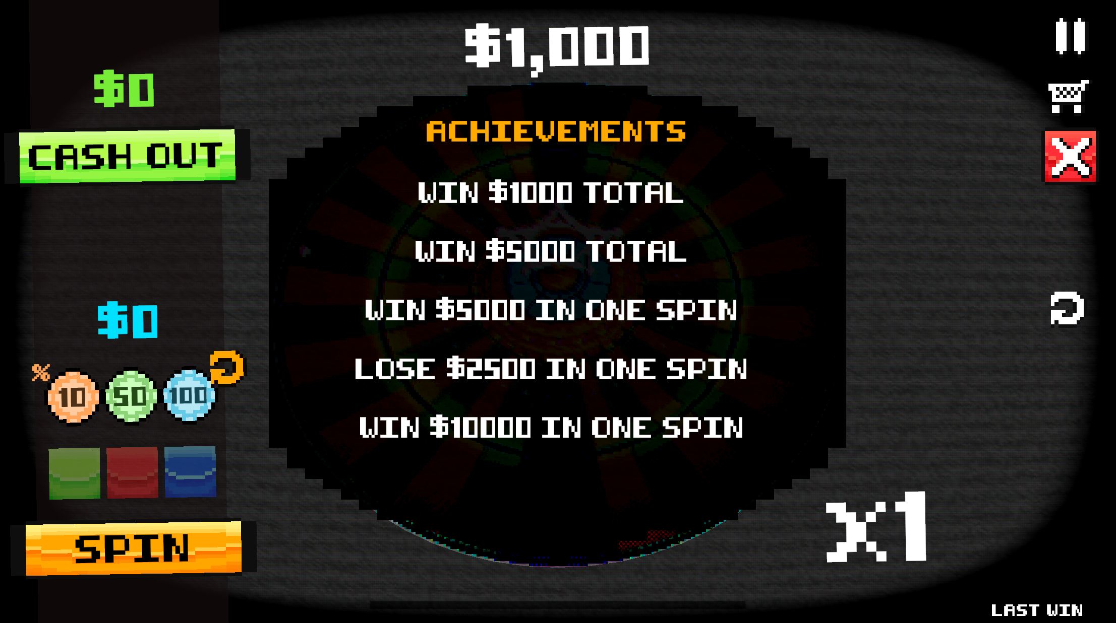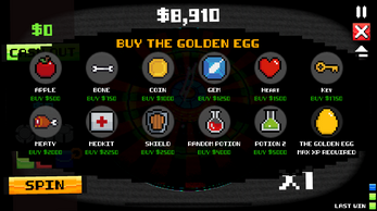 Spend your winnings on items, unlock achievements, and earn XP through both progress and risk. There are no shortcuts, the only way forward is to keep spinning, keep buying, and keep pushing your luck.