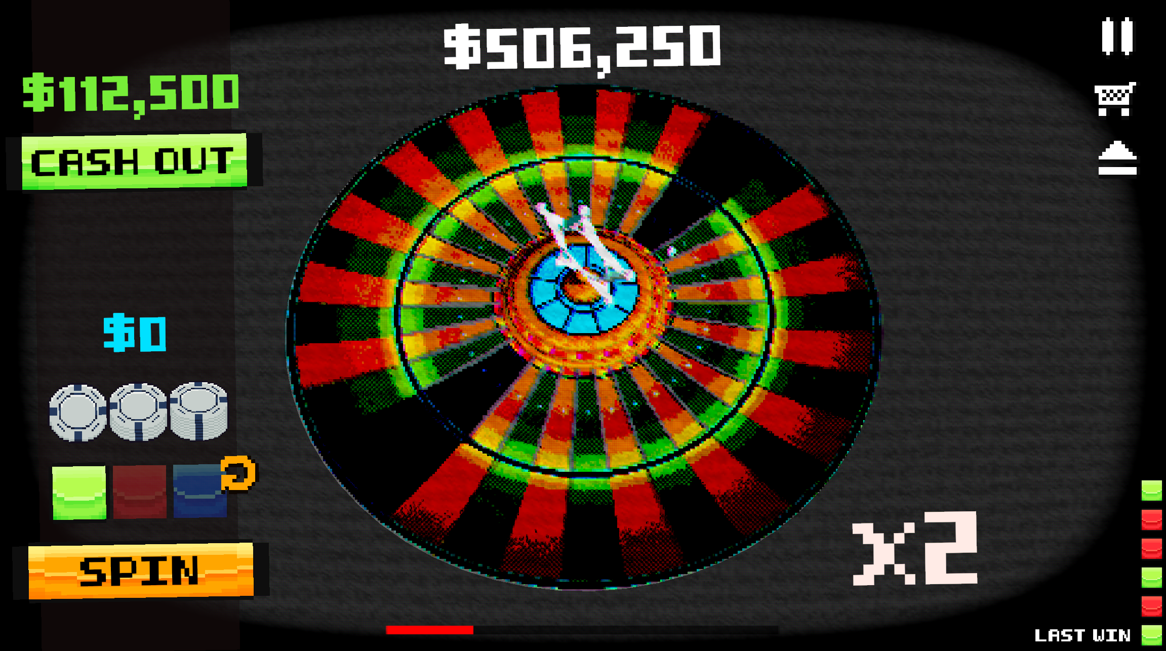 Spin to win and build your multiplier as your cash pot grows higher and higher. Every successful spin pushes your run forward, but one bad streak can lose it all.